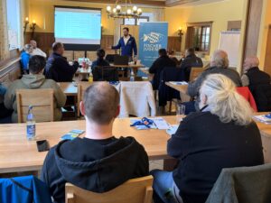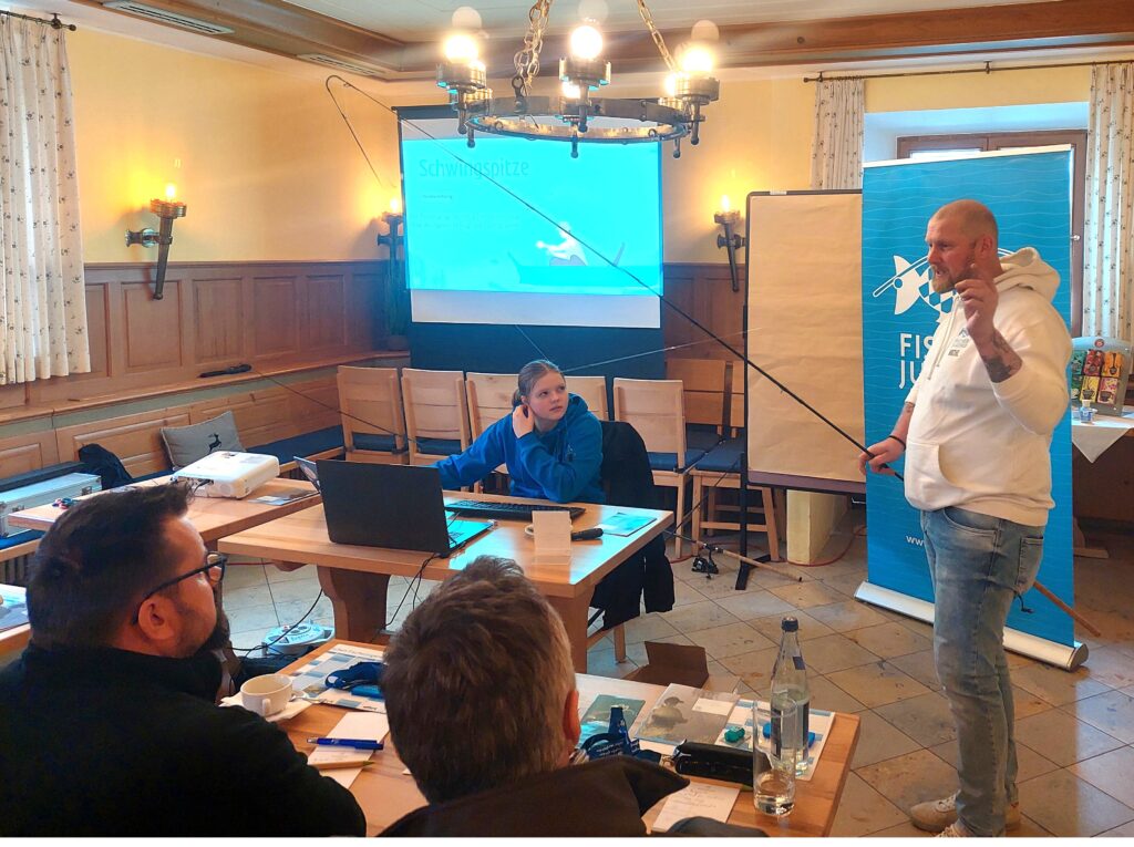 Wir starteten mit einem Ein- und Ausblick in die Projekte und Entwicklungen der Bayerischen Fischerjugend, bzw. unseres Landesbüros. Zu Beginn durften wir die erfreuliche Nachricht eines erneuten Mitgliederwachstums in unseren Jugendgruppen verkünden. Das zweite Jahr in Folge stiegen die Zahlen unserer Junganglerinnen und Jungangler in den Angelvereinen – so darf es gerne weitergehen! Einen weiteren Schwerpunkt bildete unser Inklusionsprojekt, das von unserem neuen Projektmitarbeiter, Nico Pellicer, vorgestellt wurde. Nico stellte die allgemeine Zielsetzung, das Konzept sowie konkrete Planungsschritte vor, was bei allen Anwesenden auf große Zustimmung stieß.
