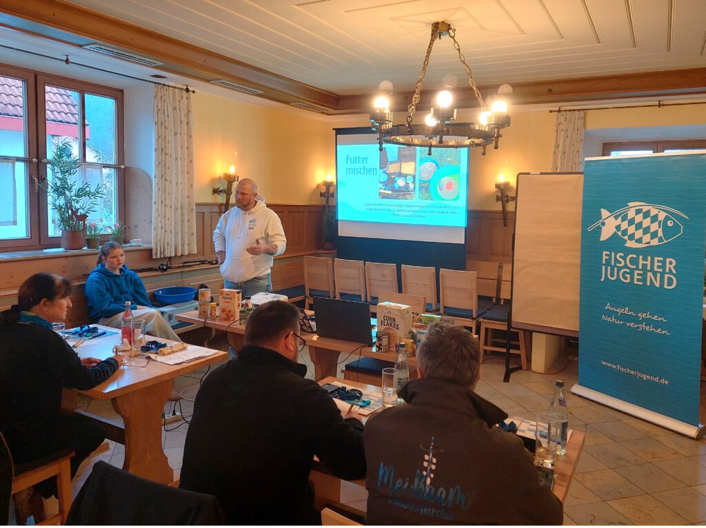 Manchmal muss man für „neue“ Themen in der Vergangenheit suchen – gerade beim Angeln gibt es viele tolle Methoden und Tipps, die heute kaum jemand mehr praktiziert! Daher haben wir mit Michl Hrubesch wieder unseren Friedfisch-Spezi eingeladen, der tolle Eindrücke vom Angeln mit der Schwingspitze, Winkelpicker und feinen Schwimmer-Montagen lieferte. Von Gerätekunde, über den Aufbau diverser Montagen, bis hin zu eigenen Filmaufnahmen vom Einsatz am Gewässer war hier ebenfalls viel geboten. Unsere Anwesenden waren dann auch selbst gefordert und durften eine altbewährte Schlaufenmontage für das Futterkorbangeln binden. Natürlich ist sie auch für das herkömmliche Grundfischen geeignet. Im Anschluss daran ging es noch um das eigenständige Mischen von Anfutter, was eine tolle Aktivität für Jugendstunden darstellt. Es gibt unzählige Varianten und der Nachwuchs kann sich an den unterschiedlichsten Rezeptideen versuchen. Sämtliche Zutaten sind im Supermarkt erhältlich. Also nicht nur pädagogisch, sondern auch für den Geldbeutel eine tolle Sache!